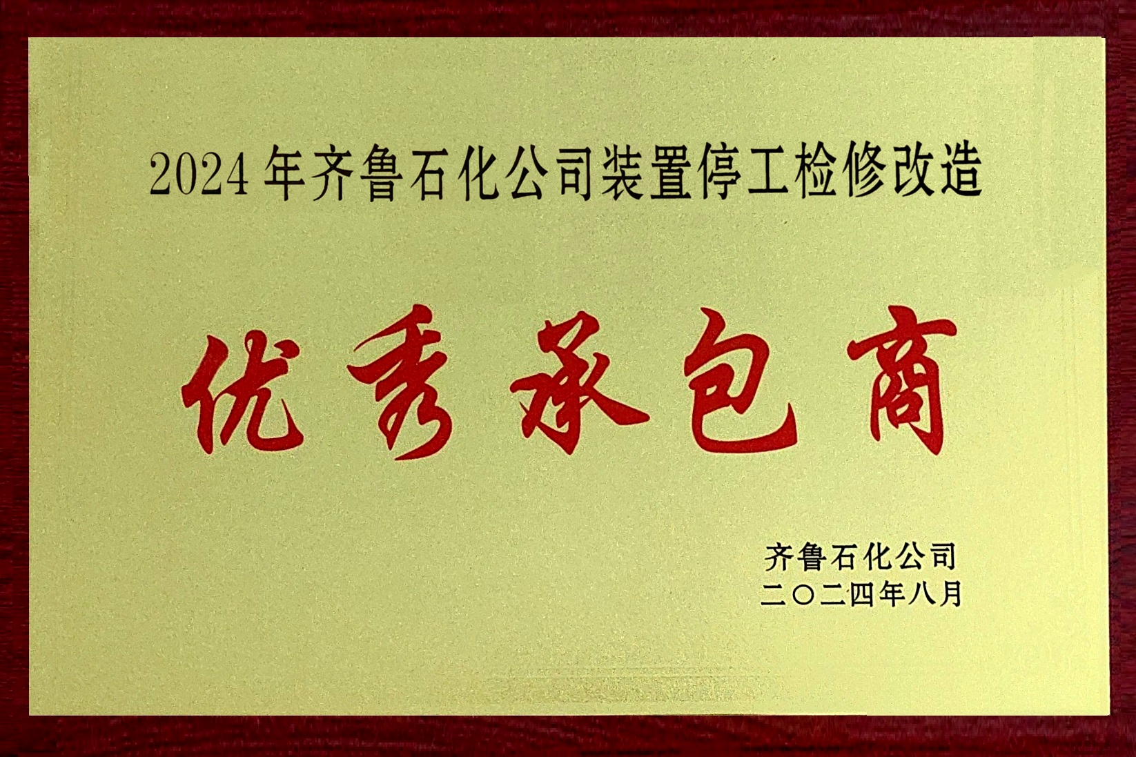 8月6日,在齊魯石化召開的2024年裝置停工檢修改造總結(jié)表彰會(huì)上,我公司榮獲“2024年齊魯石化公司裝置停工檢修改造優(yōu)秀承包商”表彰。